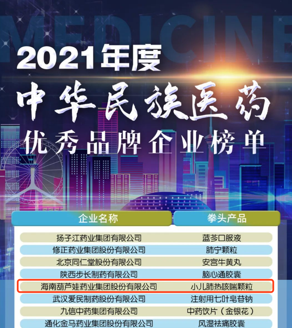 12月29日,全国工商联医药业商会发布了“2021年度中华民族医药优秀品牌企业榜单”,GA黄金甲药业集团凭借黄金单品小儿肺热咳喘颗粒(4克)实力登榜。