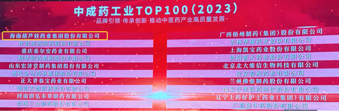 会上,还发布了“2023中成药工业TOP100”榜单,GA黄金甲药业集团荣耀上榜。